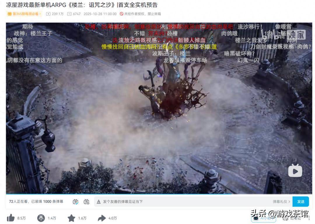 上周二,国产单机游戏《楼兰:诅咒之沙》在B站“游先看”上惊艳亮相。少见的古西域题材以及流畅新奇的战斗机制给不少玩家留下深刻的印象,截止目前该游戏的首个PV在B站的播放量超过230万,点赞超过8.5万。