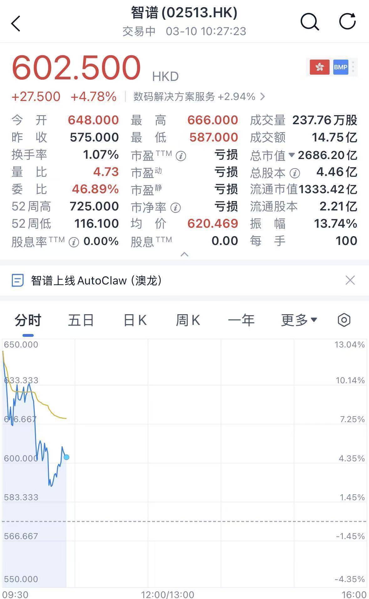 ▲智谱股价走势(图源:腾讯自选股)