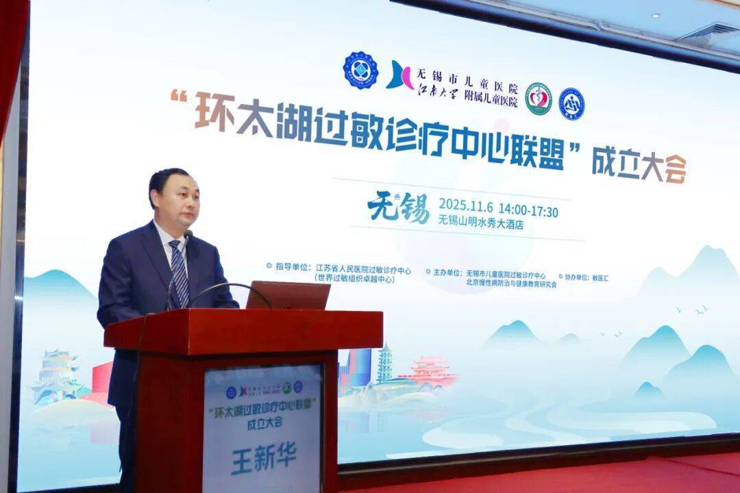 王新华对联盟的成立表示祝贺。他表示,近年来,无锡市卫健委深入推进卫生健康“三名”战略。环太湖过敏诊疗中心联盟的成立,不仅是一项医疗协作机制,更是一份守护群众健康的庄严承诺。联盟将以“技术共享、人才共育、科研共攻”为核心理念,通过构建标准化诊疗流程、推广精准化检测技术、完善全程化管理体系,破解过敏性疾病患者“看病难、诊断慢、管理散”的现实痛点,为环太湖区域群众提供同质化、高水平的过敏防治诊疗服务。